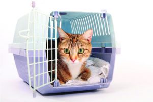 Cuşca de transport trebuie să facă parte din mobilierul casei. În ea trebuie puse recompense şi o pătură cu care pisica să fie familiarizată. Este de preferat ca aceasta să fie cu capac detaşabil pentru că de multe ori pisica trebuie consultată în cuşcă, pentru reducerea anxietăţii şi a stresului.- În maşină, cuşca de transport trebuie acoperită cu un prosop şi fixată cu centura de siguranţă întotdeauna pe bancheta din spate.