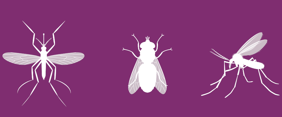Pe timp de vară, ectoparazitozele care evolue sunt cele produse de diptere (insecte cu două aripi). Aici ne referim la țânțari, la muște și la flebotomi. Aceștia din urmă sunt mai rari în România. La animalele sănătoase din punct de vedere clinic muștele, pe lângă faptul că sunt generatoare de disconfort, mai pot produce iritații sau mecanisme de natură toxico-alergică. Însă țânțarii sunt într-adevăr foarte importanți din punct de vedere medical deoarece transmit animalelor noastre de companie, și nu numai animalelor de companie, anumite boli, fie infecțioase, fie parazitare.